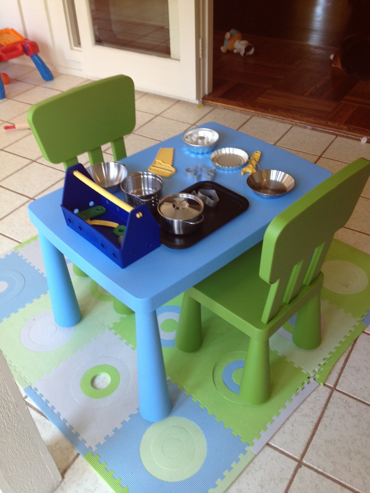 There were blue chairs to match the table, but I like to mix it up a little bit.